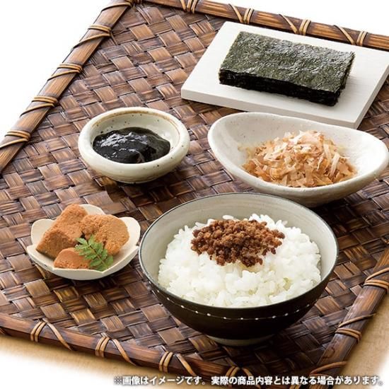 ●商品内容/北海道産鰊フレーク50g・焼きのり佃煮85g×各2、鰹削り節(2g×3)・有明海産味付け海苔(8切×10)×各2、まぐろ油漬け70g×2