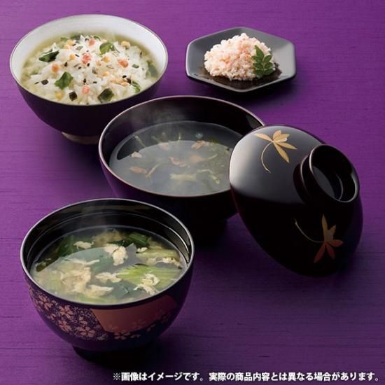 ●商品内容/あわび入お吸い物4g・松茸入お吸い物4.2g×各1、丸美屋海苔茶漬け6g×2・甘海老のみそ汁(7.5g×3)・永谷園松茸風味のお吸い物(2.3g×4)×各1、紅ずわいがにほぐし身55g×6