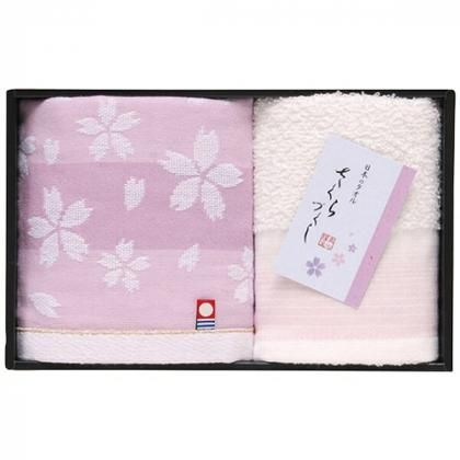 日本の心「さくら」を、日本を代表するタオル産地である今治と泉州のそれぞれの伝統と技法で仕上げたタオルです。今治タオルは川もに舞散る桜の花びらを着物の帯締めのように表現したガーゼタオル、泉州タオルは後晒しの技法を使い波模様を表現したタオルになっています。