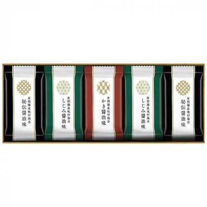 ●商品内容/味付海苔(しじみ醤油味:8切×4)、味付海苔(秘伝醤油味:8切×4)×各6、味付海苔(かき醤油味:8切×4)×3